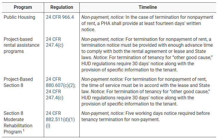 One day after RD issued its Rule, February 26, 2026, HUD issued an interim final rule HERE revoking both a 2021 interim final rule and the 2024 final rule that required that PHAs and owners of properties receiving PBRA provide tenants with a termination notice at least 30 days prior to filing a formal judicial eviction. This new rule restores the regulatory notice timelines that existed prior to the 2021 interim final rule:
